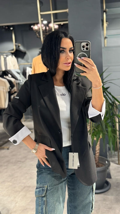 SİYAH OVERSIZE MANŞETLİ ÖZEL TASARIM CEKET
