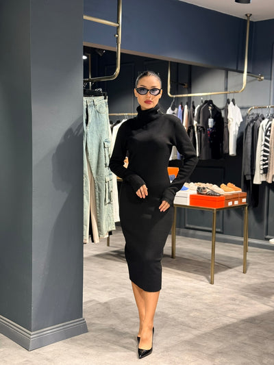 SİYAH BOĞAZLI TRİKO ELBİSE